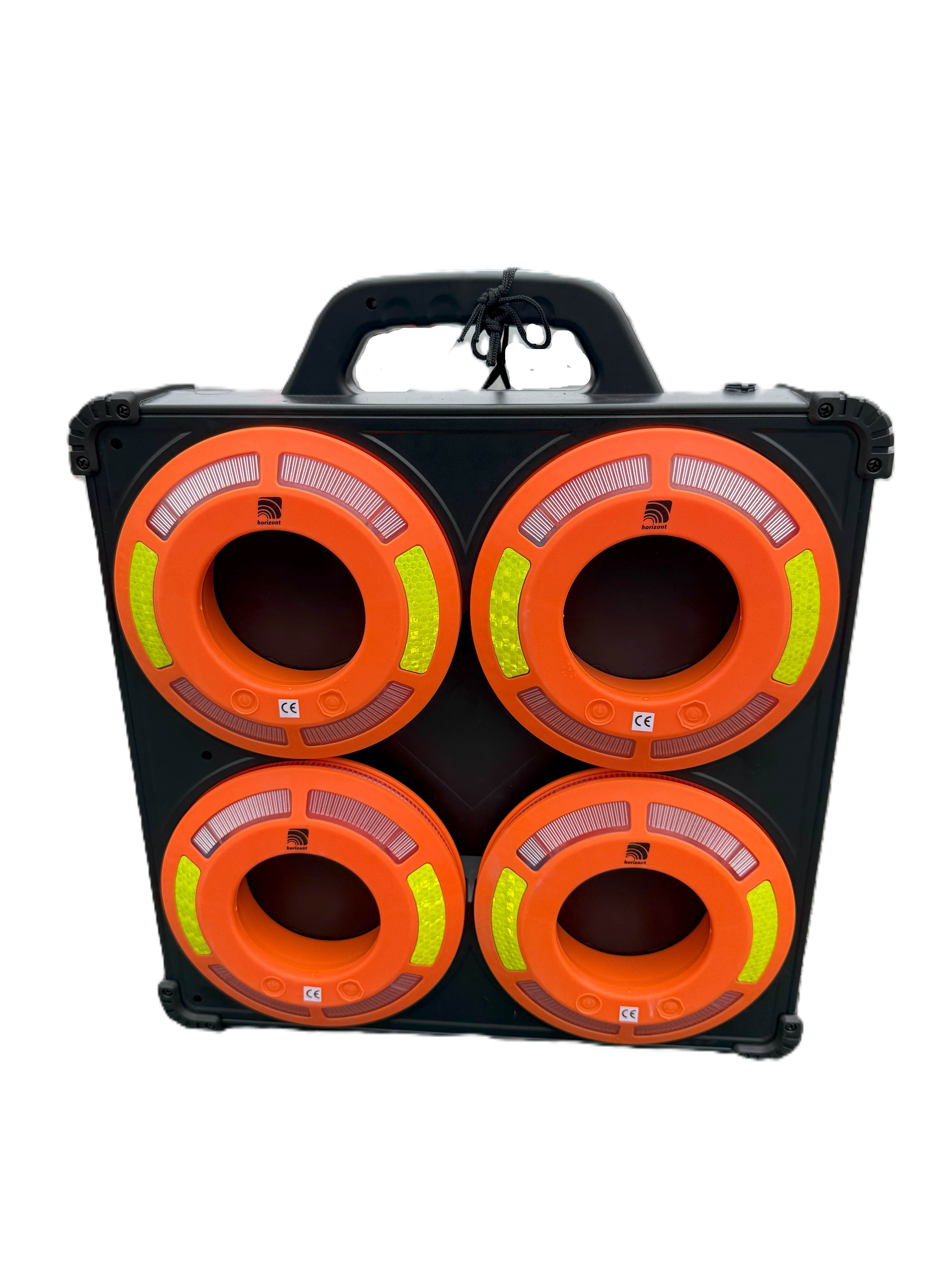 The Cone Flare - turns ordinary traffic cones into bright, attention-grabbing warning lights. Each rechargeable ring slips easily over the top of a cone, instantly improving visibility and marking out work zones, lane closures, or incidents. The lights can be set to flash in sequence for a clear directional flow, or flash together for maximum impact — helping drivers instantly recognise changing road layouts and keeping workers safer on site. Lightweight, durable and supplied in a compact charging case, the Cone Flare is easy to deploy, simple to use and built for the rigours of roadside environments. A clever, sustainable addition to any traffic management setup..